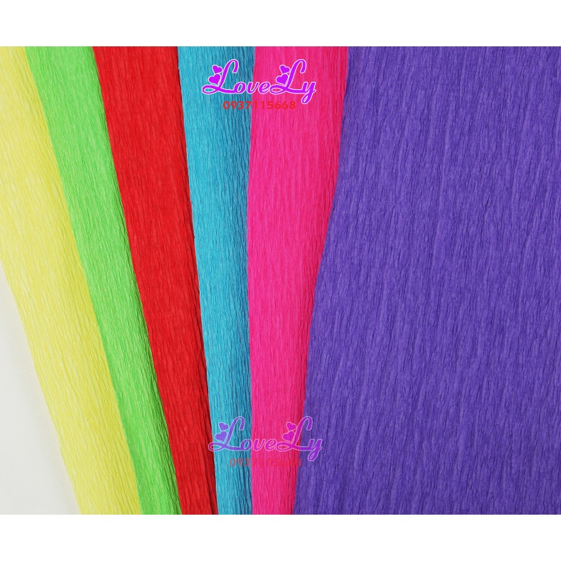 Giới thiệu Cuộn Giấy nhún giấy nhăn làm hoa giấy đủ màu sắc size 50cm x 2m5