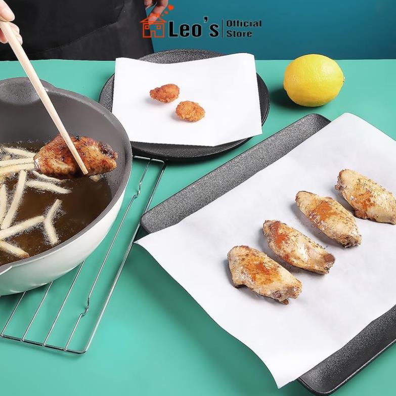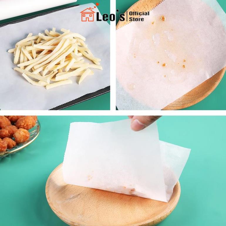 - Giấy lót nồi chiên không dầu có đặc tính chịu nhiệt cao, chống ẩm, chống thấm và chống thấm dầu nên rất an toàn khi đặt trên tủ hấp / nướng / lò nướng.