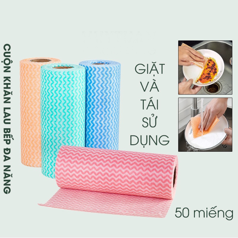 Cuộn Giấy Vải Lau Đa Năng Tiện Dụng (50 Tờ) - Khăn lau chén đĩa vệ sinh nhà cửa 50 miếng 1 cuộn