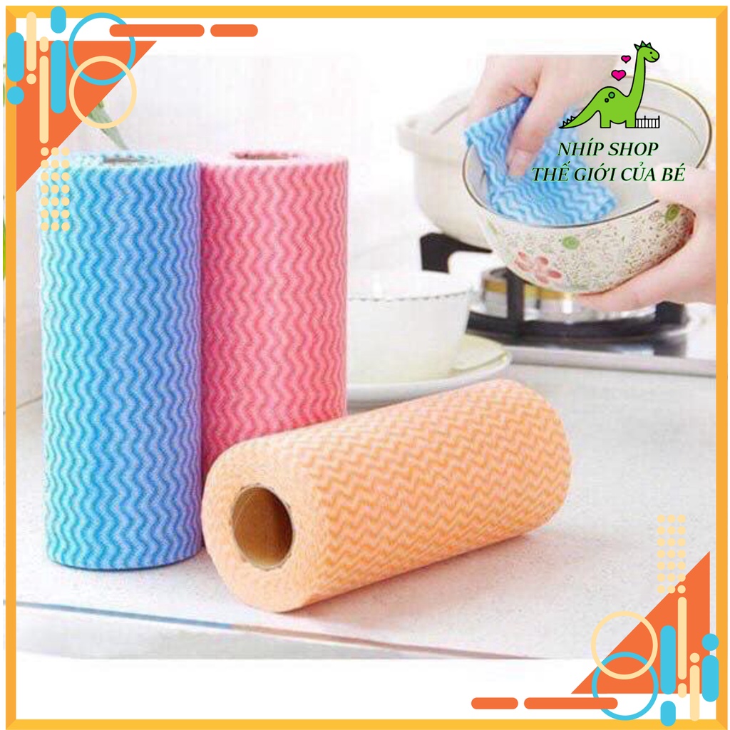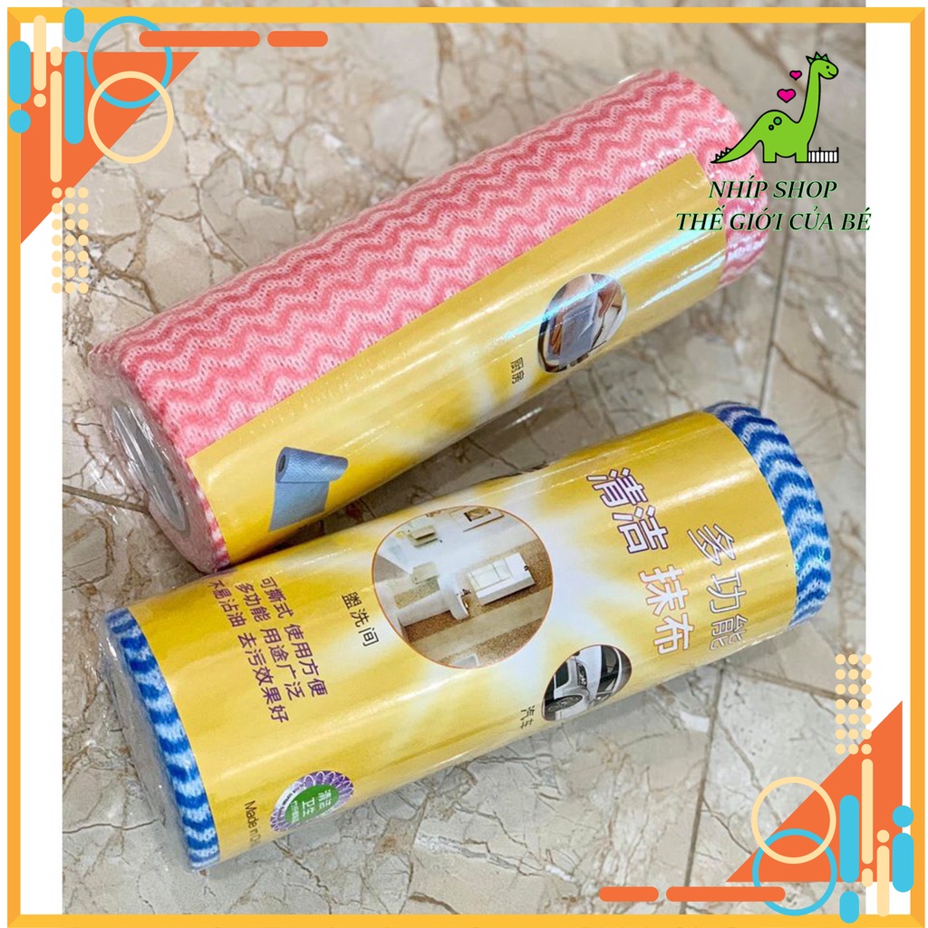 Cuộn giấy lau đa năng bằng vải không dệt (50 miếng), hàng chuẩn nội địa:- Giấy lau thấm hút cực tốt