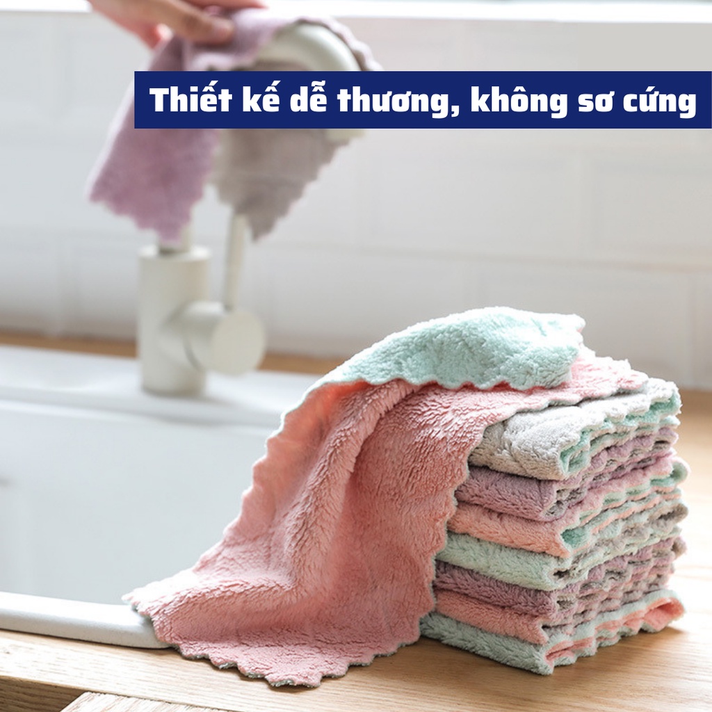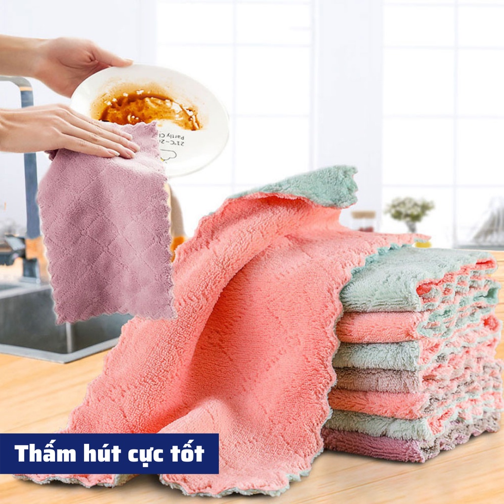 - Khăn lau đa năng 2 mặt thấm hút nước tốt so với các loại khăn khác do 2 mặt khăn thiết kế các sợi bông nhung dày dặn.