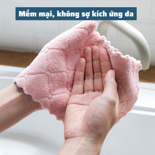 - Khăn lau đa năng 2 mặt thấm hút nước tốt so với các loại khăn khác do 2 mặt khăn thiết kế các sợi bông nhung dày dặn.