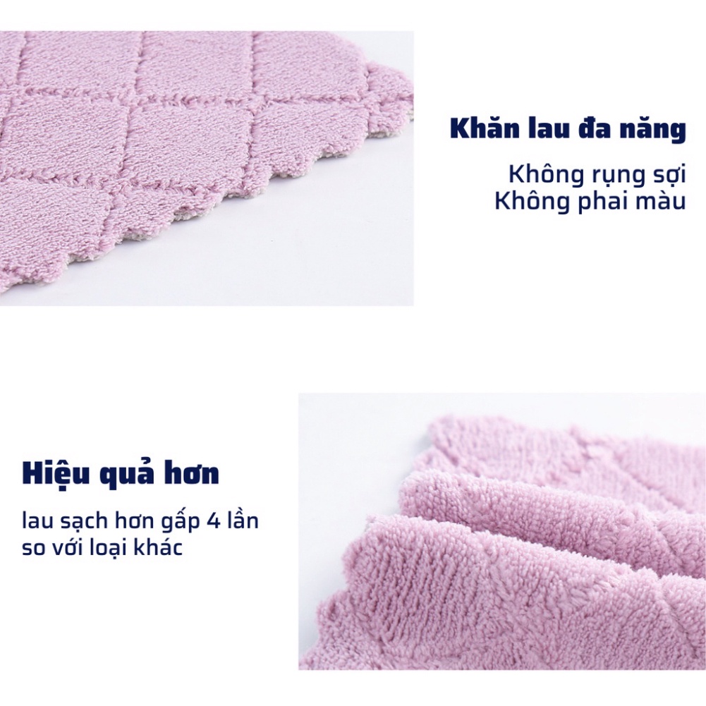 - Khăn lau đa năng 2 mặt thấm hút nước tốt so với các loại khăn khác do 2 mặt khăn thiết kế các sợi bông nhung dày dặn.