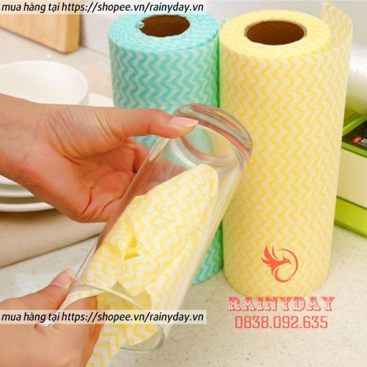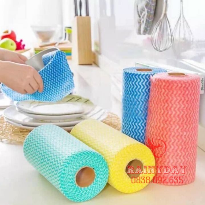 Giới thiệu Cuộn khăn lau giấy lau nhà bếp lau tay bát đĩa chén ly đa năng bằng vải không dệt siêu thấm 50 tờ