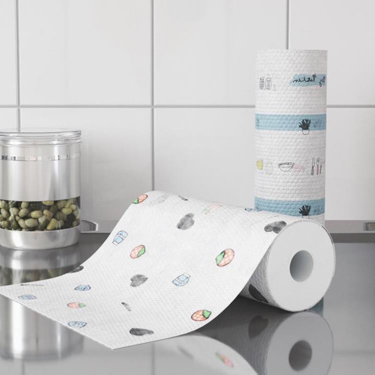 - Cuộn 80 Tờ Khăn Giấy Lau Bếp Đa Năng Trắng Họa Tiết thiết kế dưới dạng cuộn. Mỗi chiếc khăn dùng từ 1 đến vài lần (tùy mục đích) rồi bỏ đi và xé cái khác dùng nên cực kì hợp lịch sự và vệ sinh.