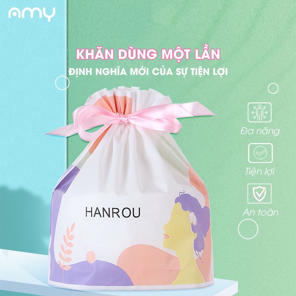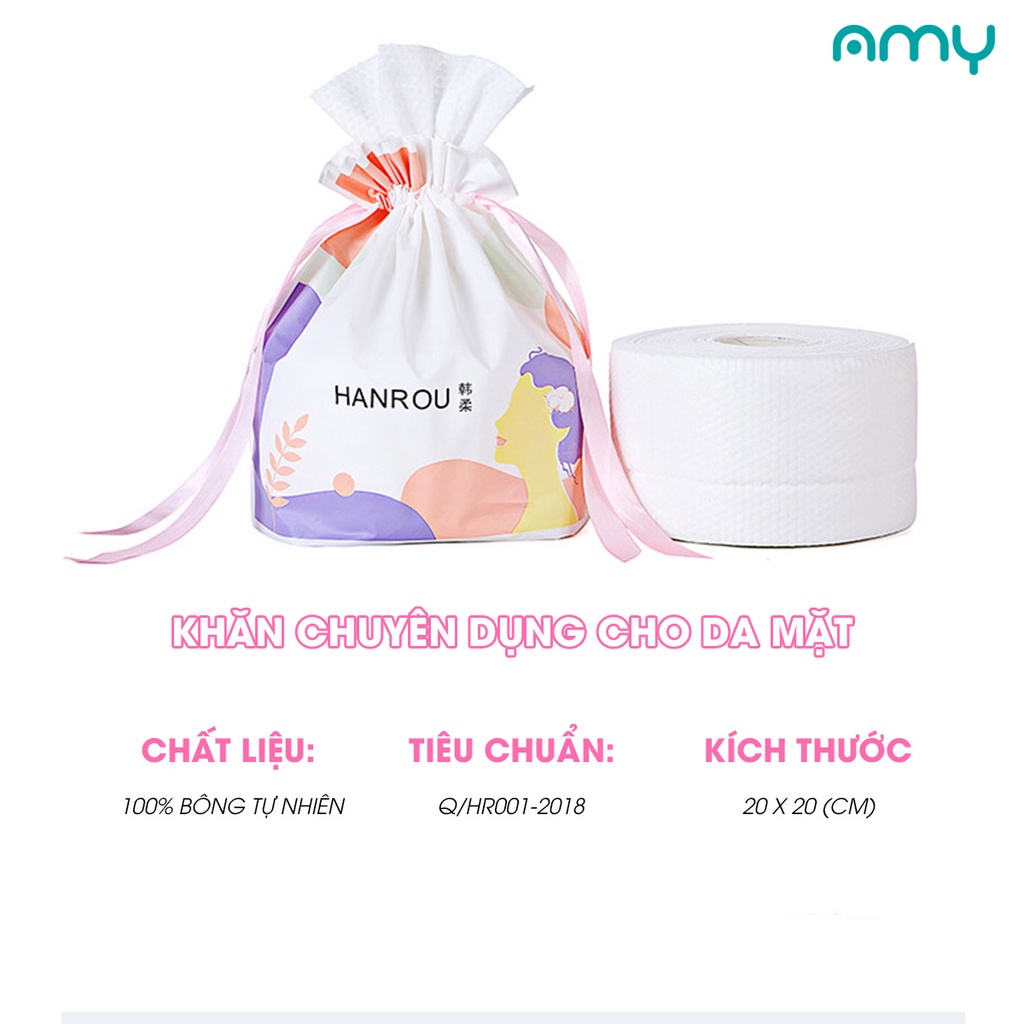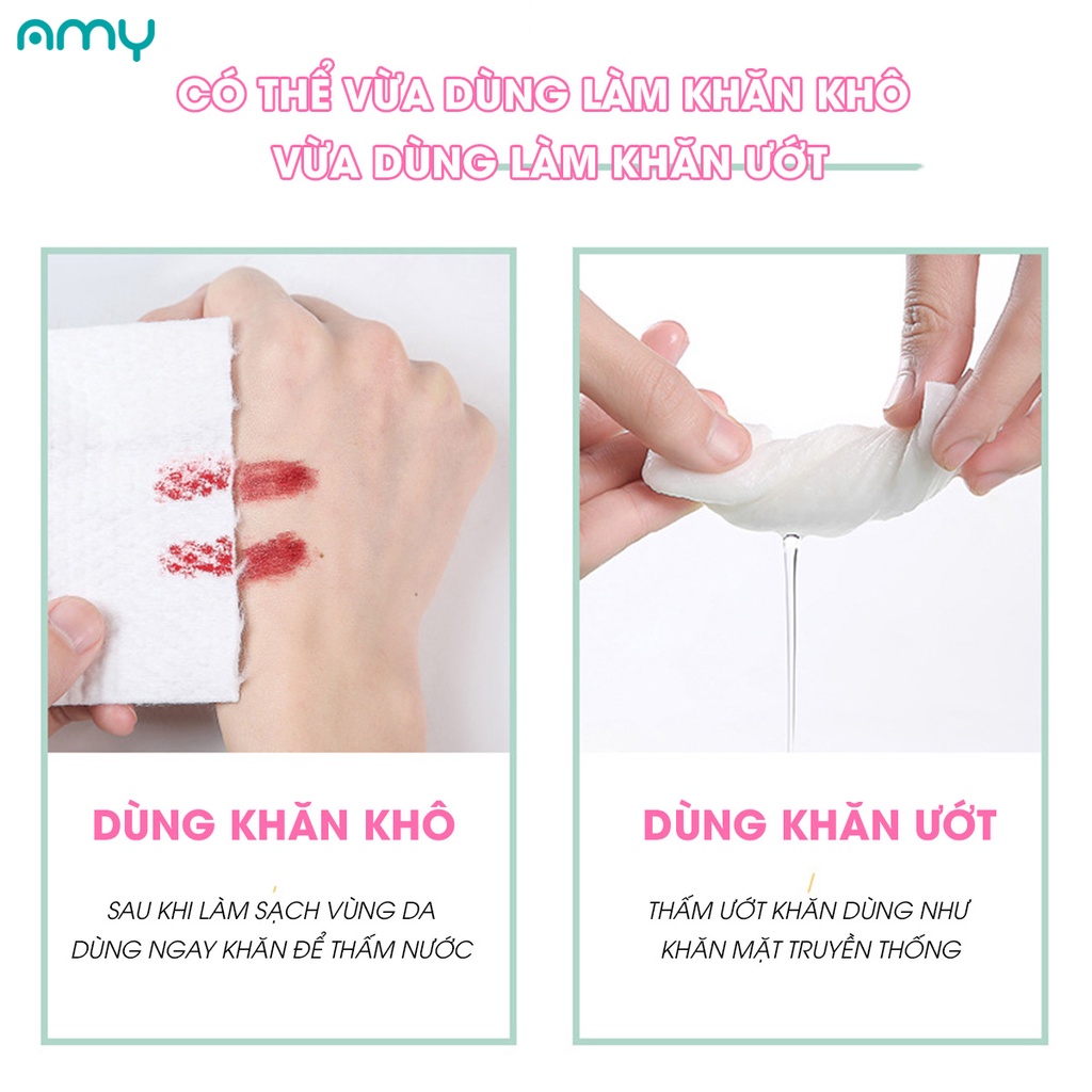 Cuộn Khăn Lau Mặt Dùng Một Lần AMY FLOWERS 20x20cm 100% Sợi Thực Vật Dùng Được Khi Ướt Và Khô
