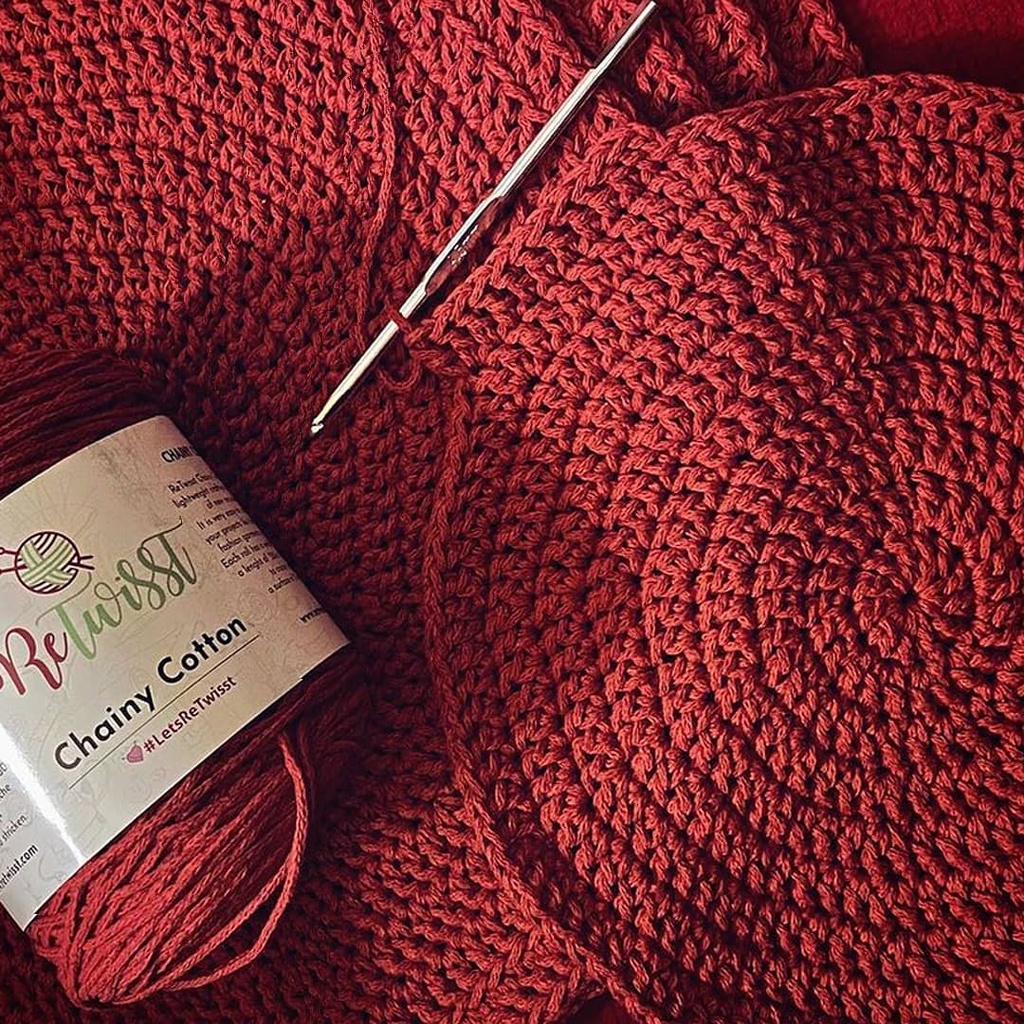 Cuộn len sợi dệt cotton tái chế Retwisst Recycled Chainy Cotton 250gr là một loại sợi thủ công rất nhẹ được làm từ sợi tái chế mới. Nó rất dễ dàng để đan và móc các dự án của bạn như phụ kiện thời trang , túi xách , thảm trải sàn , quần áo may mặc thời trang, v..v.. Mỗi cuộn có trọng lượng 250g và chiều dài 250m. Nó đủ để móc hoặc đan một bề mặt vuông 70x70 cm.Retwisst Recycled Chainy Cotton 250gr yarn is a lightweight craft yarn which is made of new recycled fibres. It is very easy to knit and crochet your projects such as home accessories fashion garments amigurumies etc. Each roll has a weight of 250g and a length of 250m. It is enough to crochet or knit a surface of 70x70 cm squared.