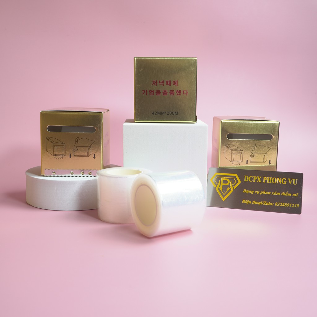 Giới thiệu Cuộn nilon ủ môi mày mí trong phun xăm, nilong ủ mày môi dai mềm bám dính tốt 42mm x 200m - DCPX PHONG VU