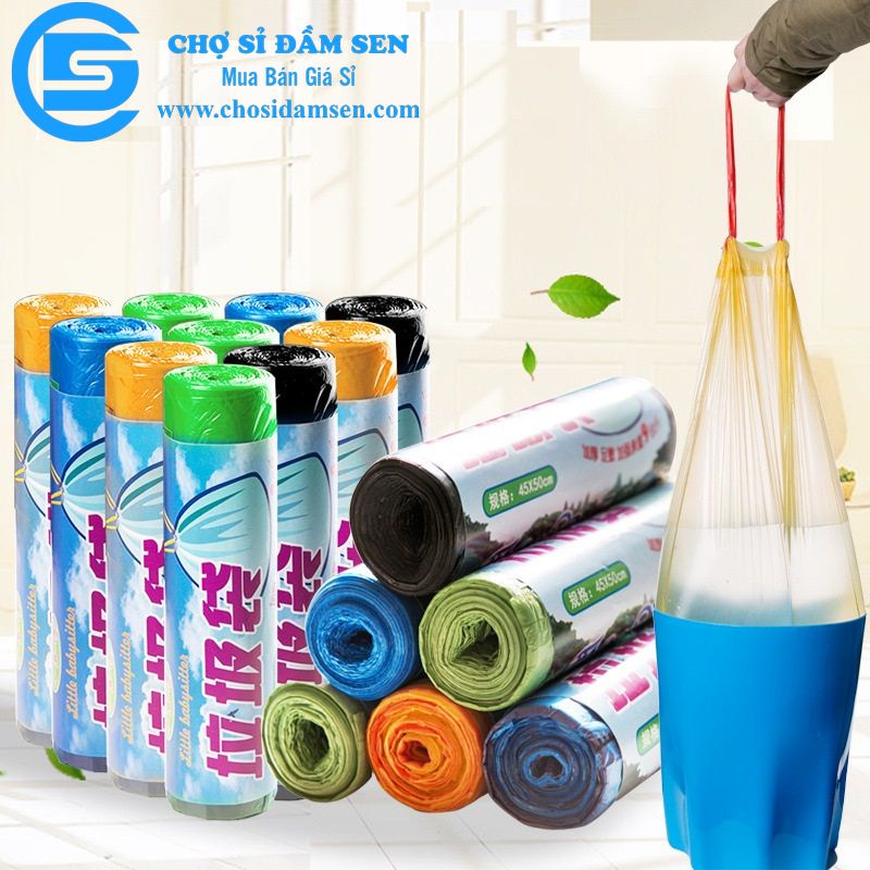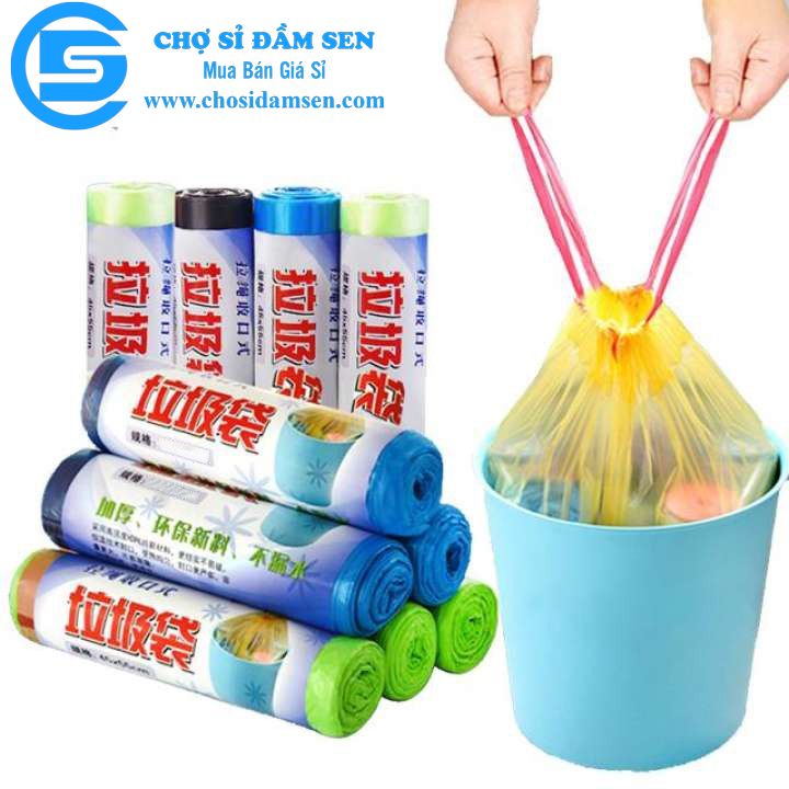 Nhà cửa & Đời sống > Dụng cụ chăm sóc nhà cửa > Túi nilon & túi rác || Cuộn túi rác có dây rút 45x50cm, túi rác tự phân hủy bảo vệ môi trường, siêu dai, chắc chắn G339-Tuirac-dayrutCòn hàng