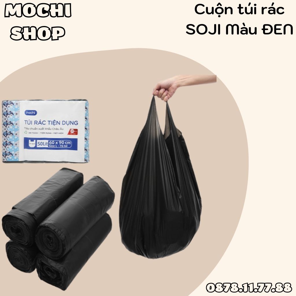 Cuộn Túi Rác MÀU ĐEN Soji Inochi, Túi Đựng Rác Có Quai Tiện Dụng, Vệ Sinh, An Toàn