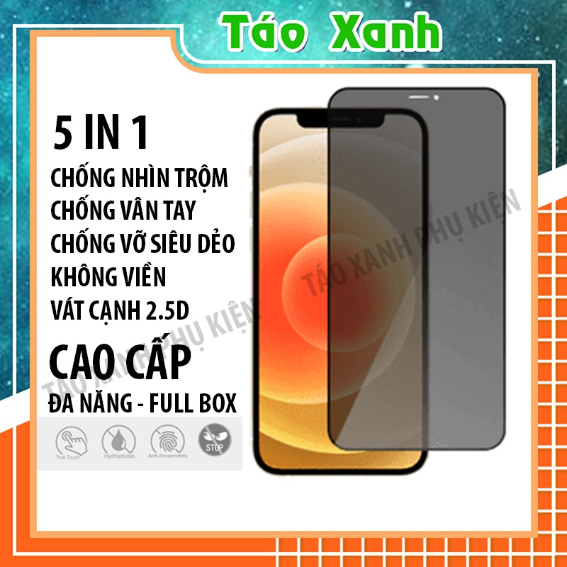 Cường Lực Full Màn Iphone (Chống Nhìn Trộm, Chống Vân Tay, Không Viền, Siêu Dẻo, Bo Viền) 5 in 1