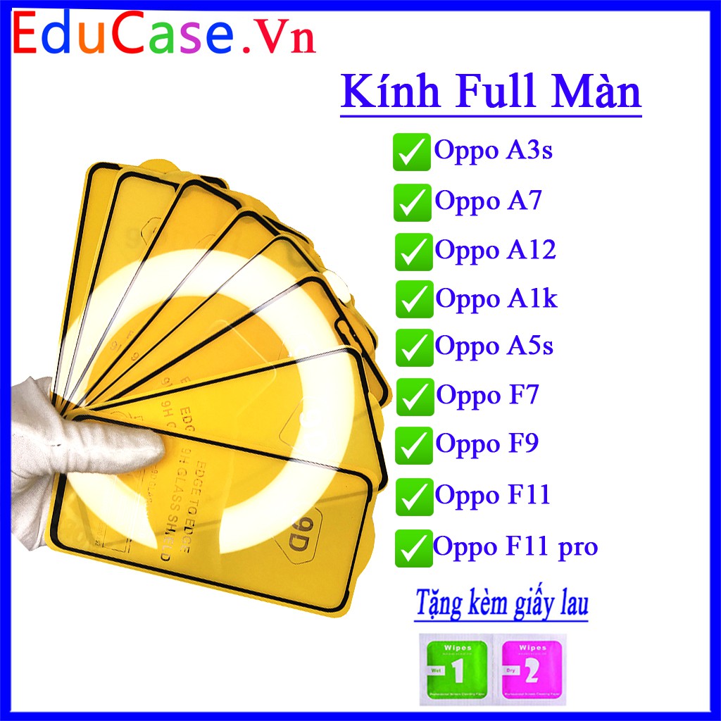 Cường lực FULL màn OPPO A7,F7,F9,F11,F11 PRO,A3S,A5S,A1K, Tặng kèm giấy lau kính khô và ướt educase.vn