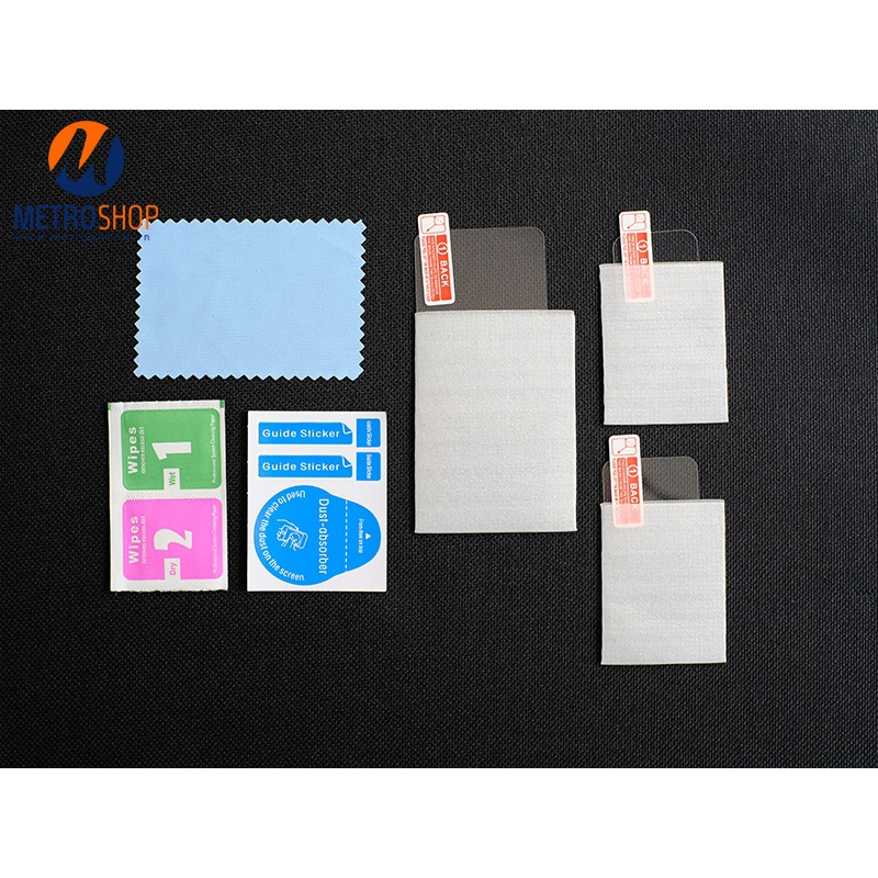 Bộ 3 miếng cường lực của chúng ta đây. Một điều quan trọng mình cần lưu ý với các bạn. Ở 2 miếng nhỏ mặt trước là màn hình và camera. Các bạn nên ướm thử trước khi dán. Tránh tình trạng dán nhầm nhé. Vì 2 miếng cường lực GoPro 9 này có kính thước chỉ nhỉnh hơn nhau 1 ít.