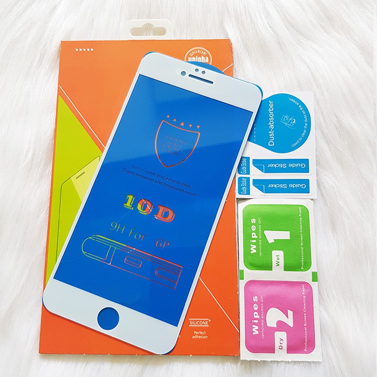 - Hướng Dẫn Sử Dụng : Lột tấm cường lực cũ ( nếu có ) sau đó lau sạch bằng khăn ướt ( túi màu xanh ) sau đó lau lại bằng khăn khô ( túi màu hồng ). Gỡ cường lực khỏi miếng gián sau đó đặt và ướm lên điện thoại cho cân đối. Nếu chẳng may bị bụi vào thì hít 1 hơi thật sâu sau đó lấy miếng băng dính , nâng cường lực lên, dính cái bụi ra ngoài. Sau đó lấy tay miết cường lực.