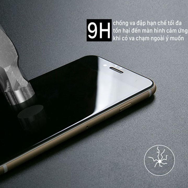 - Kính cường lực 9D full màn cho iPhone có độ cứng đạt chuẩn 9H bảo vệ an toàn cho màn hình iPhone tốt hơn gấp 5 lần các loại kính cường lực thế hệ cũ.