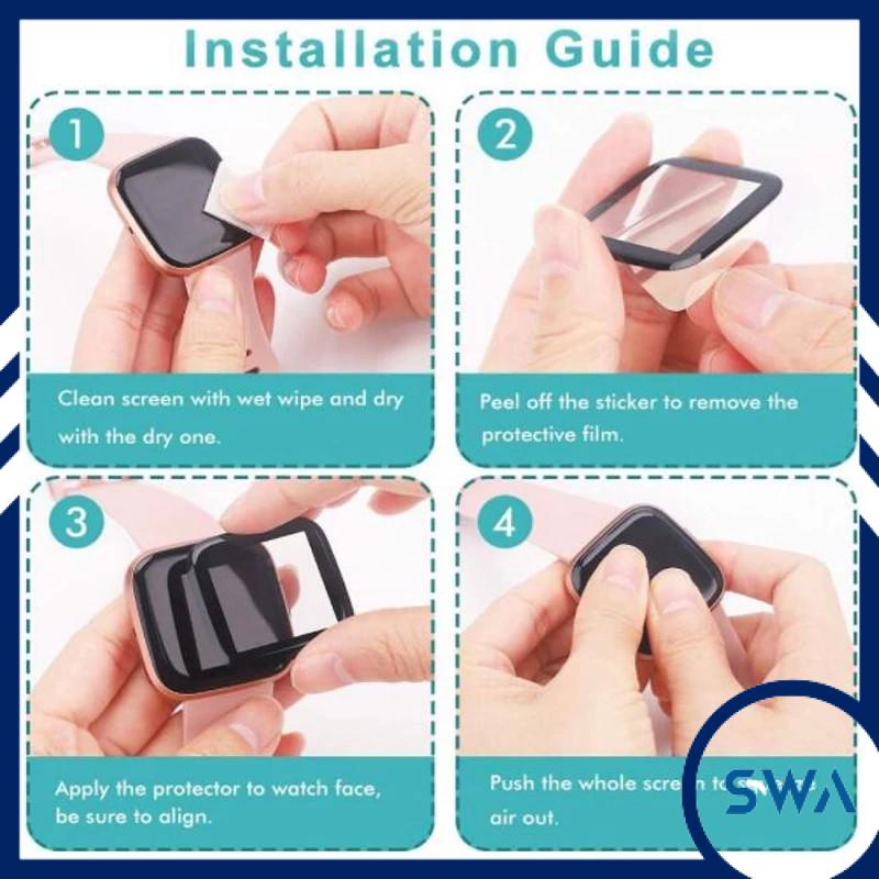 Cường lực màn hình 3D Cạnh Cong Full mặt kính cho Fitbit Sense/ Versa 3 / Versa 2 (không phải kính)Mô tả: