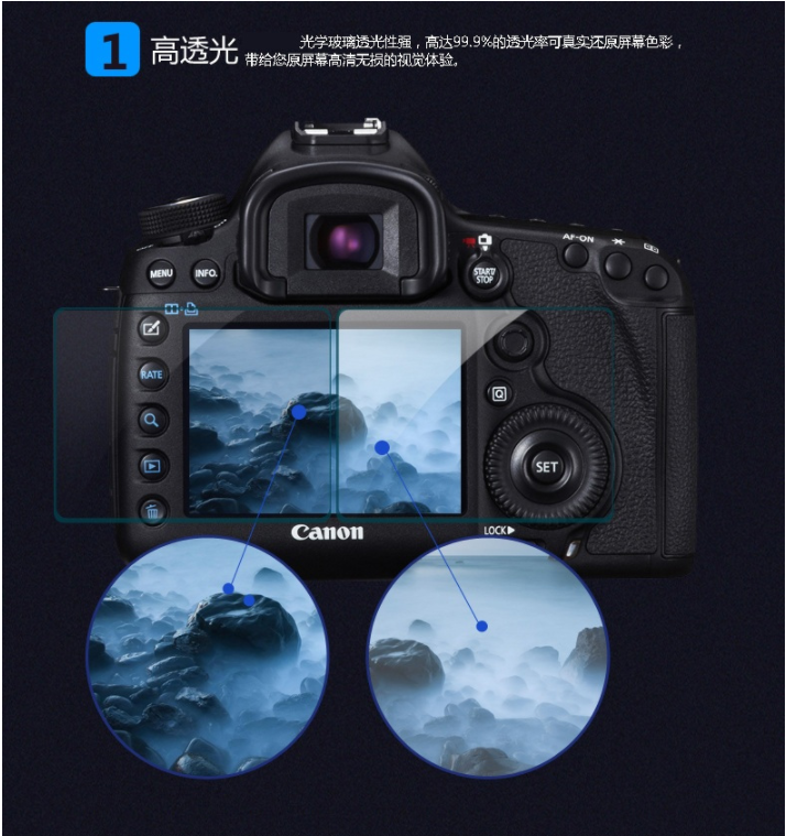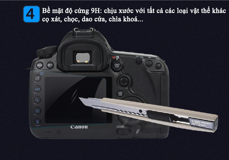 Được mạ bằng đá saphia giúp bảo vệ màn hình máy ảnh một cách hoàn hảo với độ cứng cao 9H chuẩn.