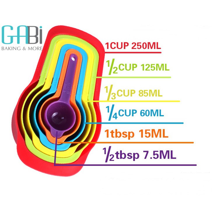 ộ sản phẩm gồm 6 thìa đong nhựa với các kích cỡ khác nhau, sử dụng để đong khối lượng các nguyên liệu trong quá trình nấu ăn, làm bánh một cách chuẩn xác, nhanh chóng. Sản phẩm có thiết kế hiện đại, màu sắc bắt mắt, giúp tô điểm cho căn bếp của gia đình bạn.Chất liệu: Nhựa PVC, không bám dính, dễ chùi rửa, vệ sinh.