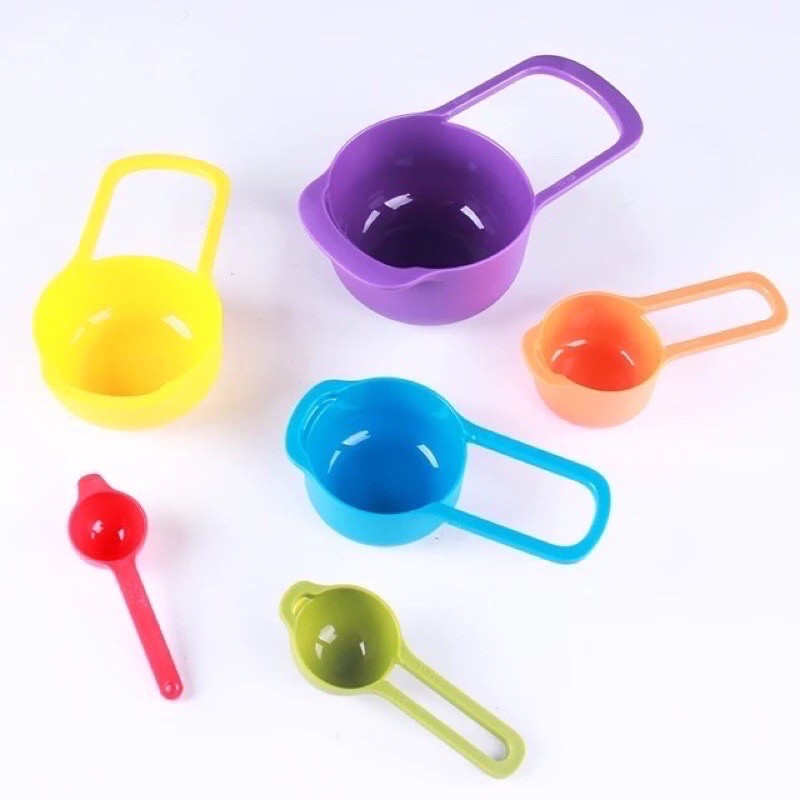 Bộ cup thìa đong 6 màuBộ cup nhựa có 6 đơn vị dùng để đong bột, bơ, nước, sữa,..