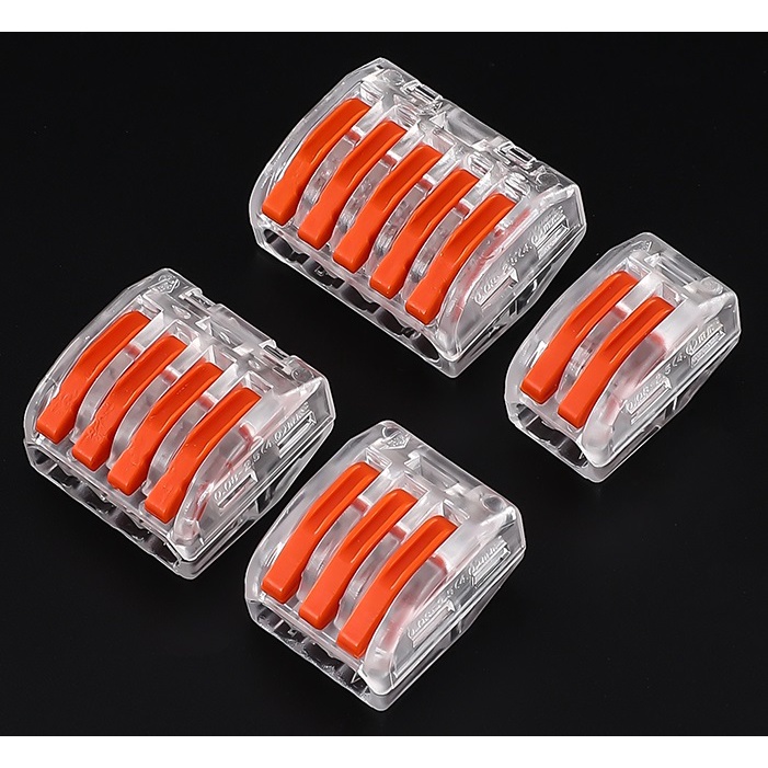 Cút Chia dây điện nối nhanh LT-213, chịu tải 32A chia, gộp dây điện 3, 4 , 5 sợi PCT LT 212 213 214 Trong suốt phù hợp cho lắp đặt điện dân dụng, giúp thi công nhanh ở những vị trí khó như đèn trần, quạt hay điều hòa. Giúp dễ dàng thay thế thiết bị hỏng hay lắp thiết bị mới mà hoàn toàn không cần kìm hay băng dính điện.Khi thiết bị lỗi bạn cũng không cần ngắt hòa toàn thiết bị mà vẫn có thể thay thế dễ dàng do thao tác thay thế đơn giản. chỉ cắm và rút là xong.