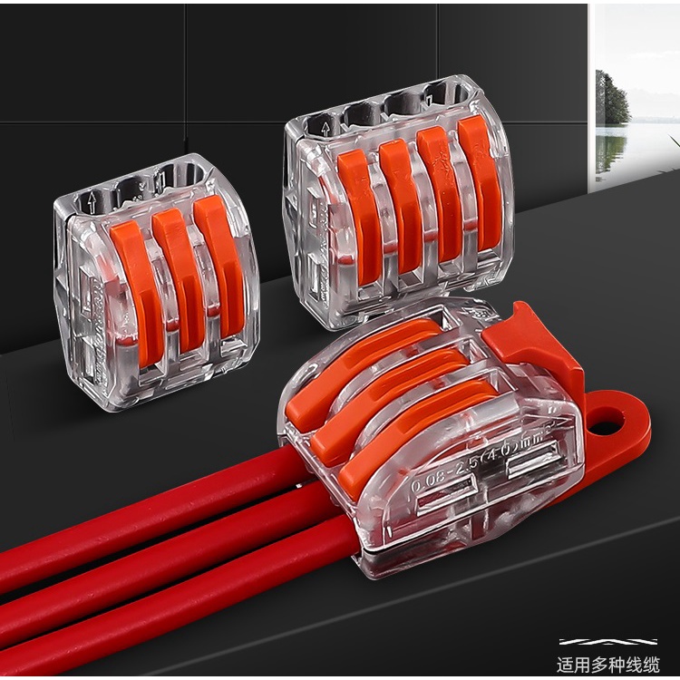 Cút Chia dây điện nối nhanh PCT-213, chịu tải 32A chia, gộp dây điện 3, 4 , 5 sợi PCT LT 212 213 214 Các màu phù hợp cho lắp đặt điện dân dụng, giúp thi công nhanh ở những vị trí khó như đèn trần, quạt hay điều hòa. Giúp dễ dàng thay thế thiết bị hỏng hay lắp thiết bị mới mà hoàn toàn không cần kìm hay băng dính điện.Khi thiết bị lỗi bạn cũng không cần ngắt hòa toàn thiết bị mà vẫn có thể thay thế dễ dàng do thao tác thay thế đơn giản. chỉ cắm và rút là xong.