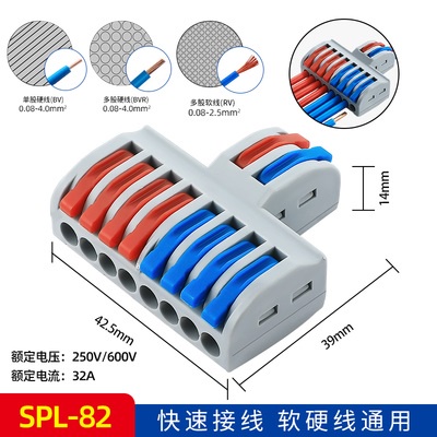 Cút Chia dây điện nối nhanh SPL-62/42/82, chịu tải 32A chia, gộp dây điện 2 dây L N SPL 62 42 82 nối nhanh tiện dụng phù hợp cho lắp đặt điện dân dụng, giúp thi công nhanh ở những vị trí khó như đèn trần, quạt hay điều hòa. Giúp dễ dàng thay thế thiết bị hỏng hay lắp thiết bị mới mà hoàn toàn không cần kìm hay băng dính điện.Khi thiết bị lỗi bạn cũng không cần ngắt hòa toàn thiết bị mà vẫn có thể thay thế dễ dàng do thao tác thay thế đơn giản. chỉ cắm và rút là xong.