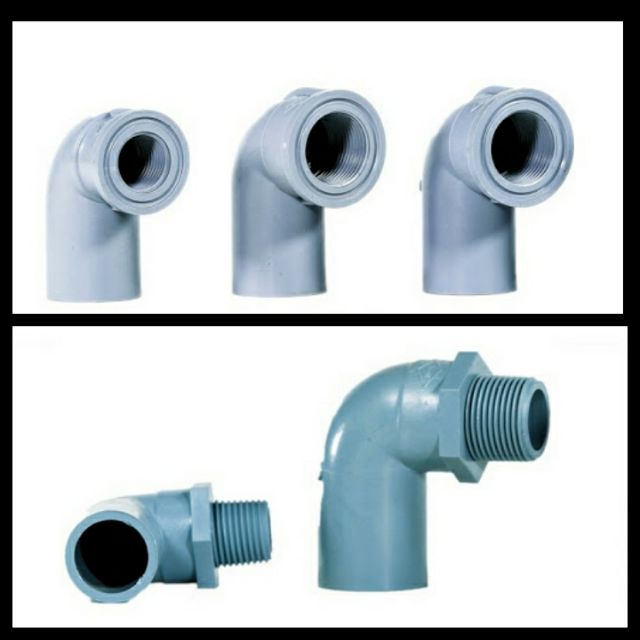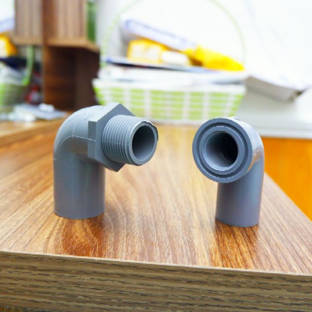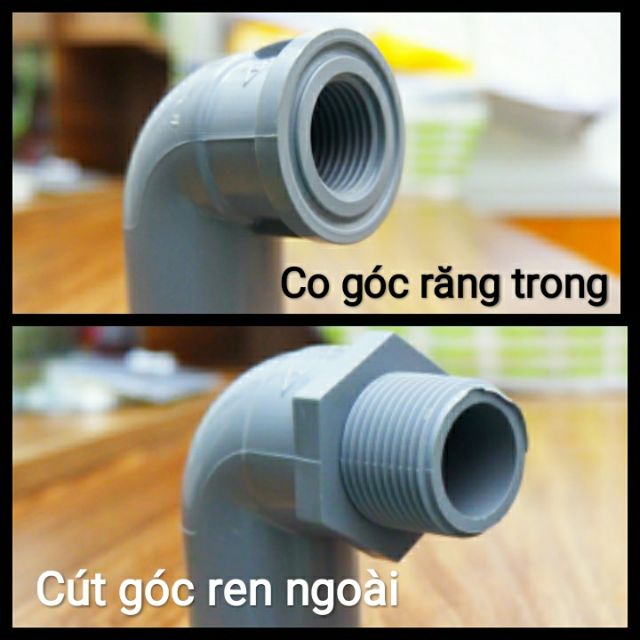 Co góc răng ngoài, cút góc ren trong. Nhựa PVCƯu điểm: Bền, giá rẻ. Tiện dụng