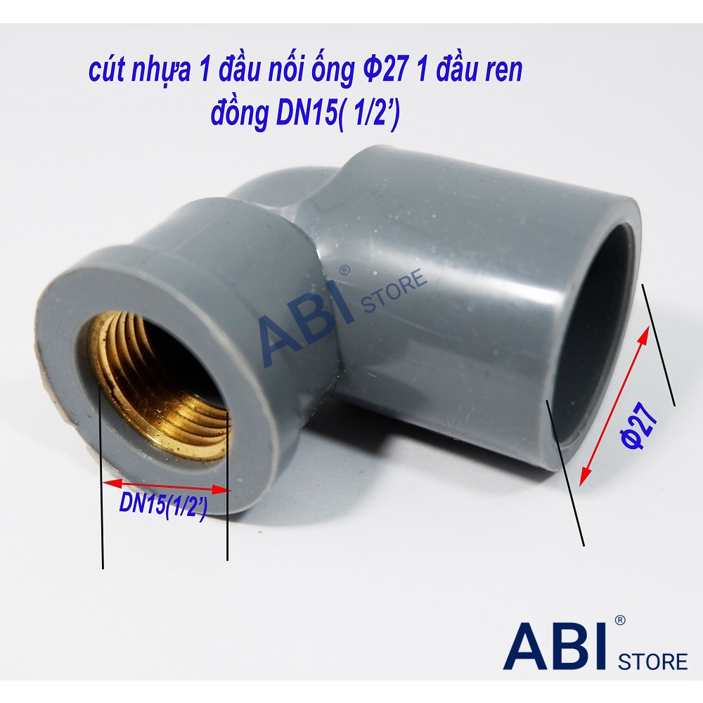 Cút nhựa góc, co góc răng ren trong đồng 27 - 1/2'', 21 - 1/2'', 27 - 3/4''Mô tả sản phẩm:
