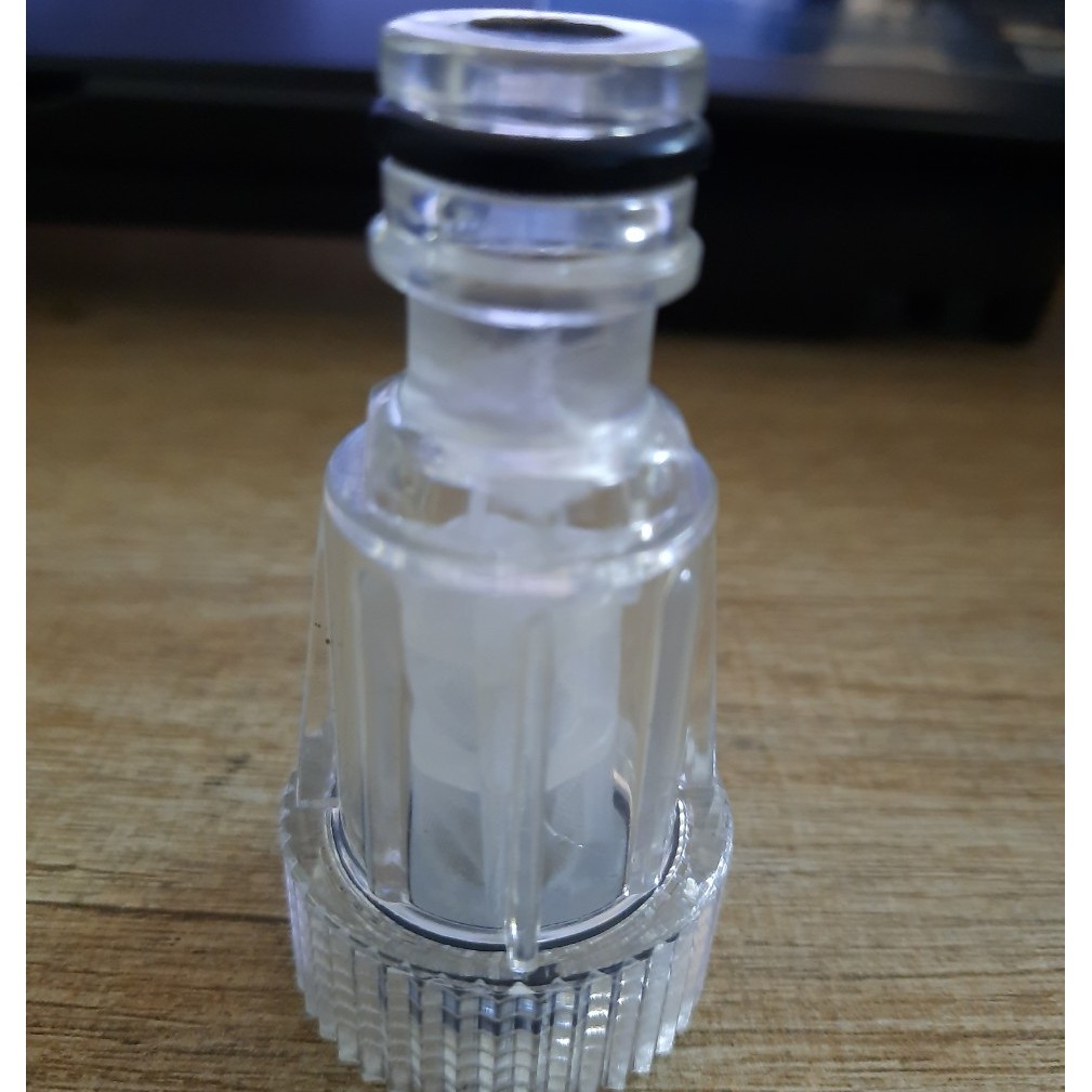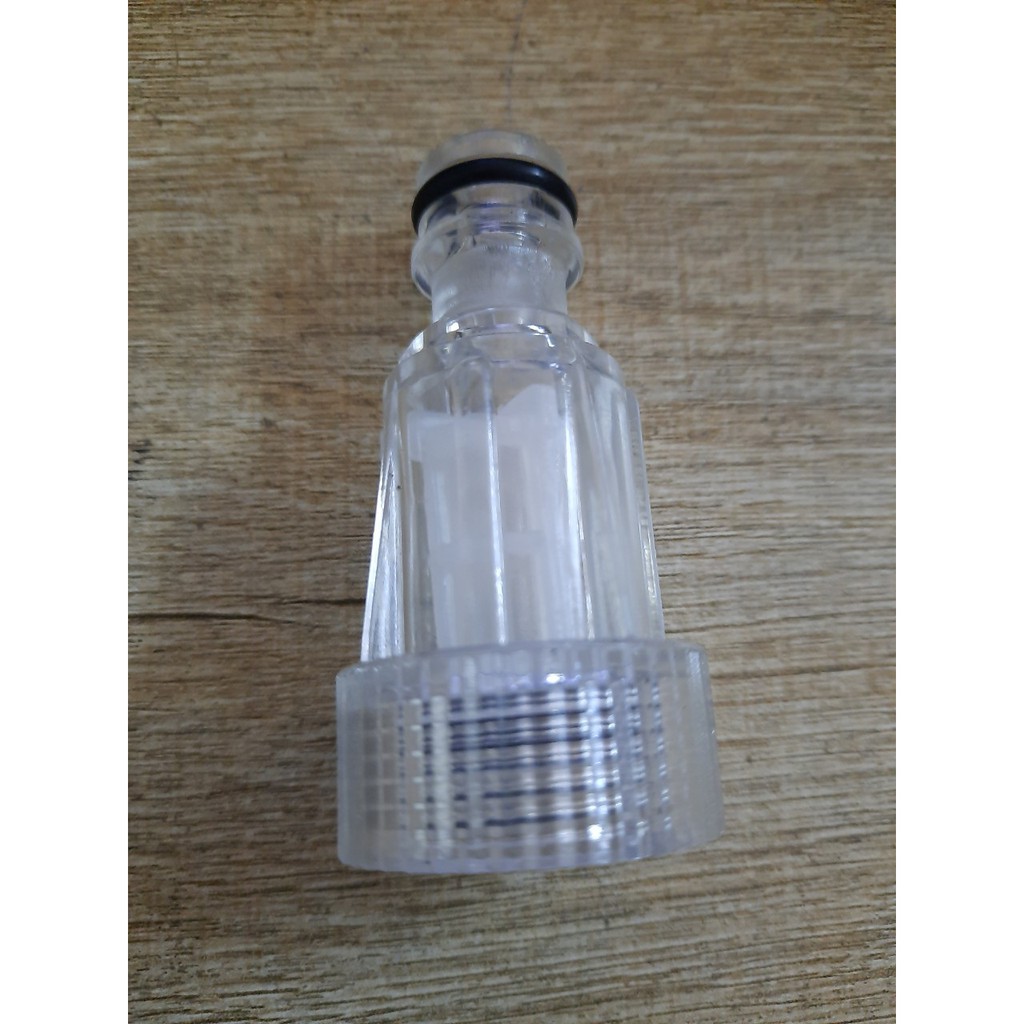 Cút nhựa lọc nối nhanh đầu hút nước máy xịt rửa xe là phụ kiện chuyên dụng cho máy rửa xe dùng lắp vào đầu cấp nước vào của máy khi cút cũ bị vỡ,hỏng.Cút được làm bằng chất liệu nhựa cao cấp chịu áp lực tốt,cấu tạo gồm 2 lớp:-Lớp vỏ bên ngoài chắc chắn với 1 đầu ren trong 25mm, thích hợp với tất cả các loại máy bơm xịt rửa xe thông dụng, đầu còn lại nối nhanh với dây cấp nước có gioăng đệm đảm bảo kín nước, không bị rò rỉ trong quá trình sử dụng.