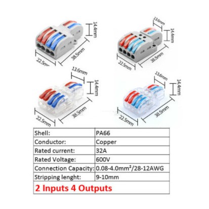 Giới thiệu Cút Nối Dây Điện 2 Đầu Ra 4 Đầu - 32A 250V/600V