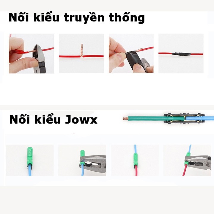 Cút nối dây điện Hàn Quốc JOWX giúp bạn có những mối nối điện nhanh chóng, gọn gàng, an toàn.Mô phỏng hàm cá mập với lõi cút mạ đồng tăng khả năng dẫn điện, khớp nối rất chắc chắn.