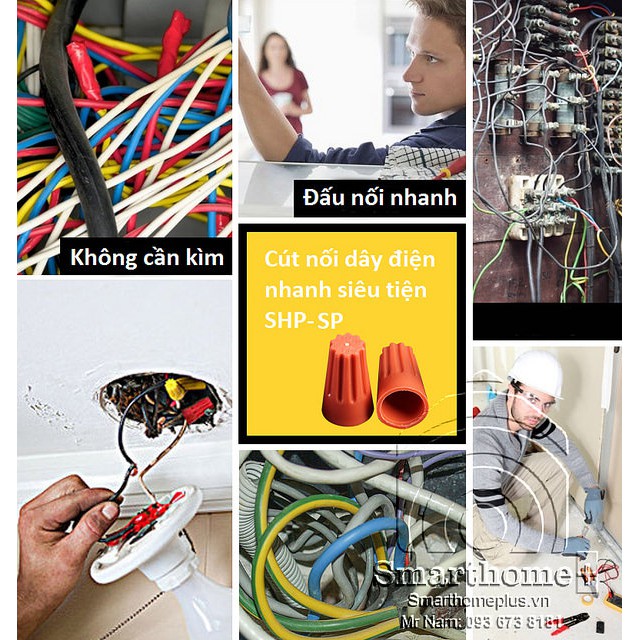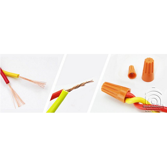 > Không cần quan tâm phải nối hay quấn dây điện với nhau đúng cách thế nào. Chỉ việc xỏ các dây điện vào cút nối và dùng tay vặn vào là xong.