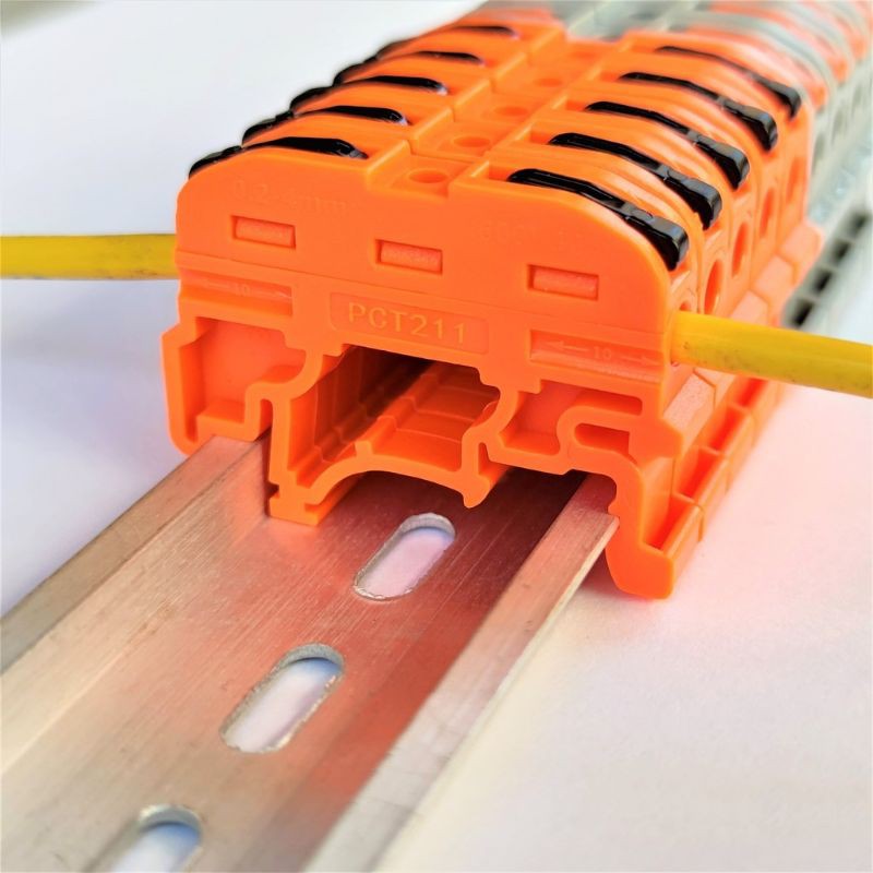 Cút nối điện đơn PCT-211 dùng gắn lên ray, tủ điện