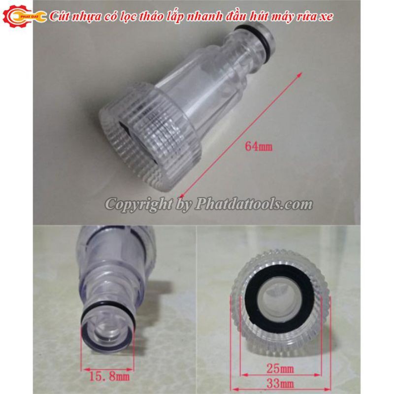 Giới thiệu cút nối máy rửa xe,Cút nhựa lọc nối nhanh đầu hút nước máy xịt rửa xe