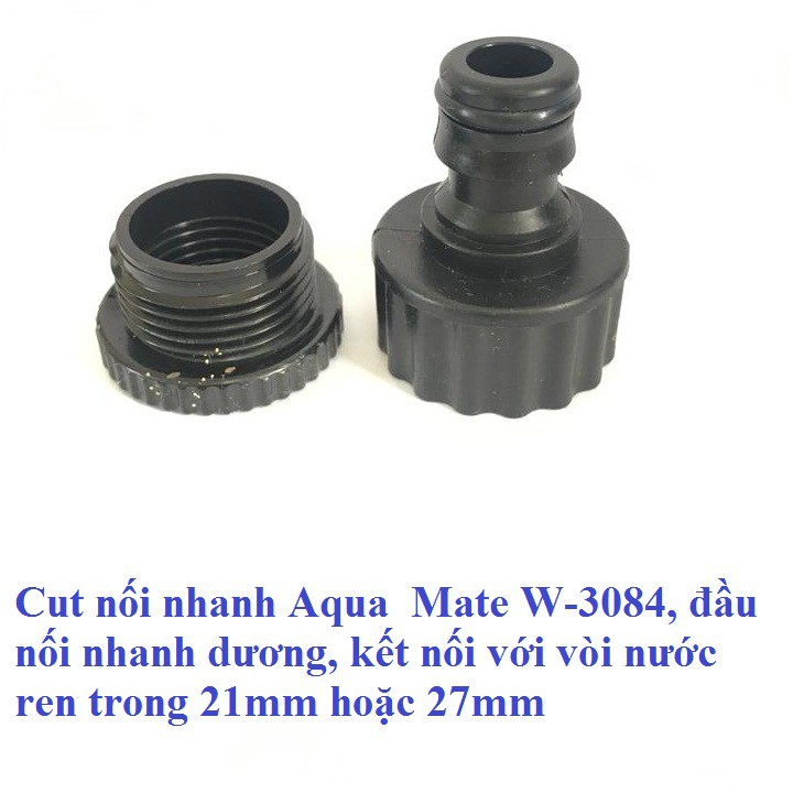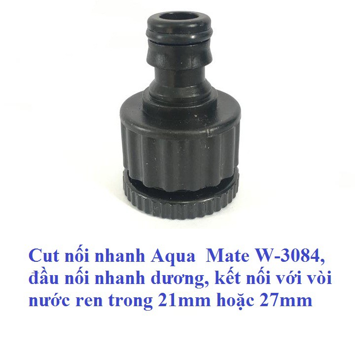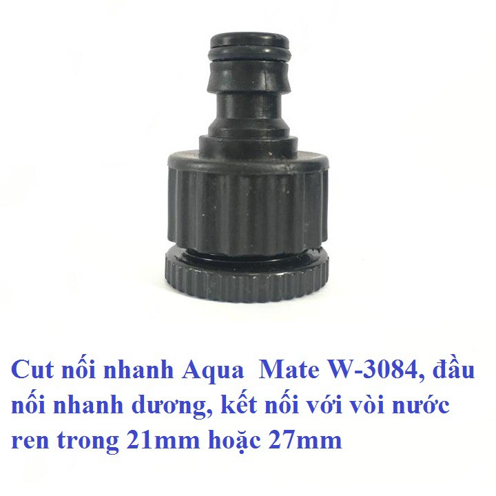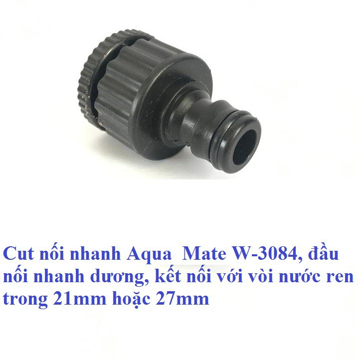 Giới thiệu Cut nối nhanh Aqua Mate W-3084, đầu nối nhanh dương, kết nối với vòi nước ren trong 21mm hoặc 27mm