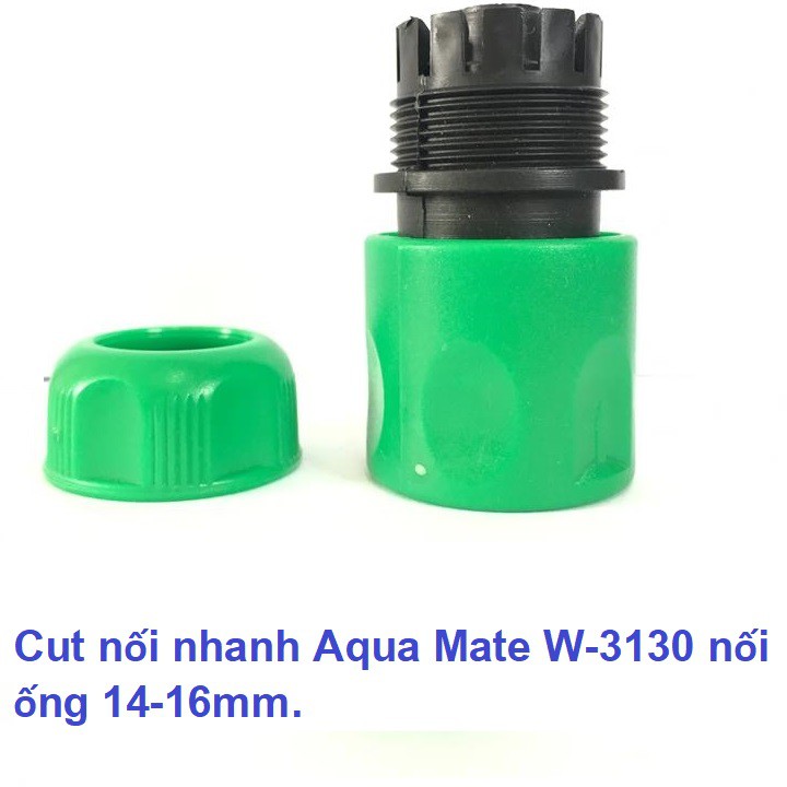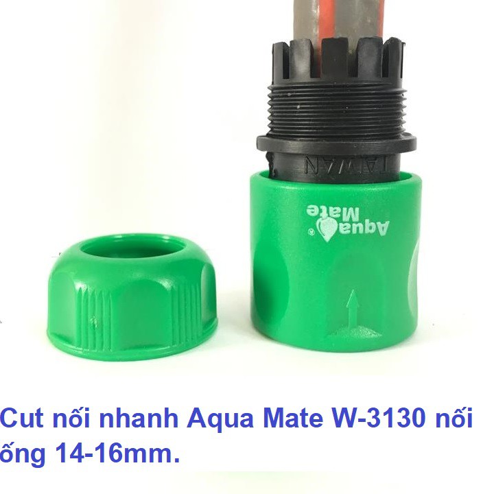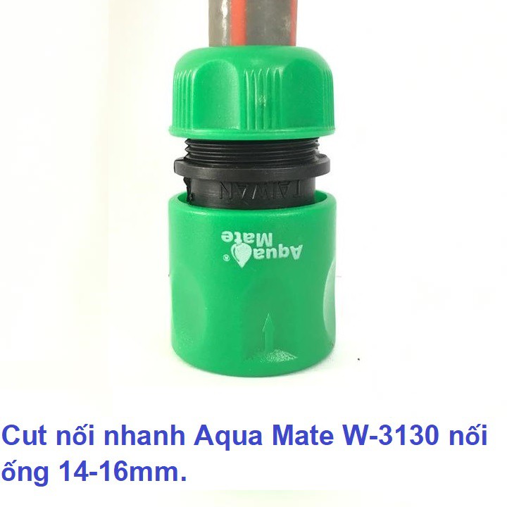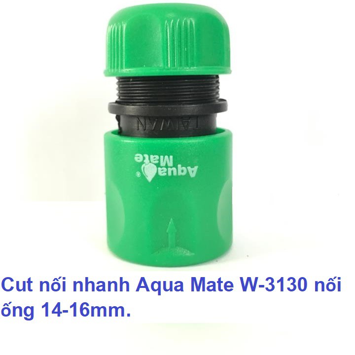 Cut nối nhanh Aqua Mate W-3130 dùng nối ống nước mềm 14-16mm, 1 đầu nối nhanh âm.Công dụng: để nối ống nước nhựa, cao su mềm 14-16mm. Một đầu nối nhanh âm để nối vào đầu nối nhanh dương khác.