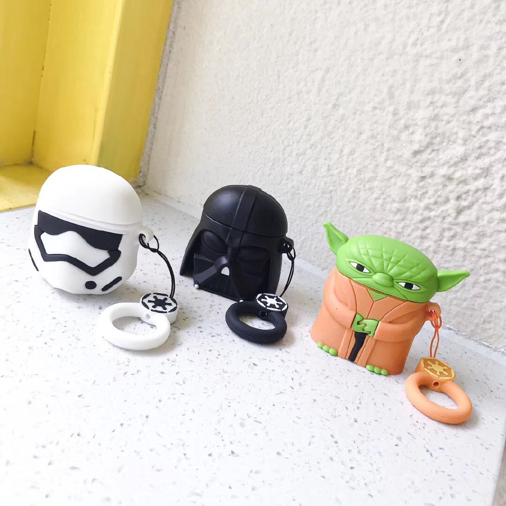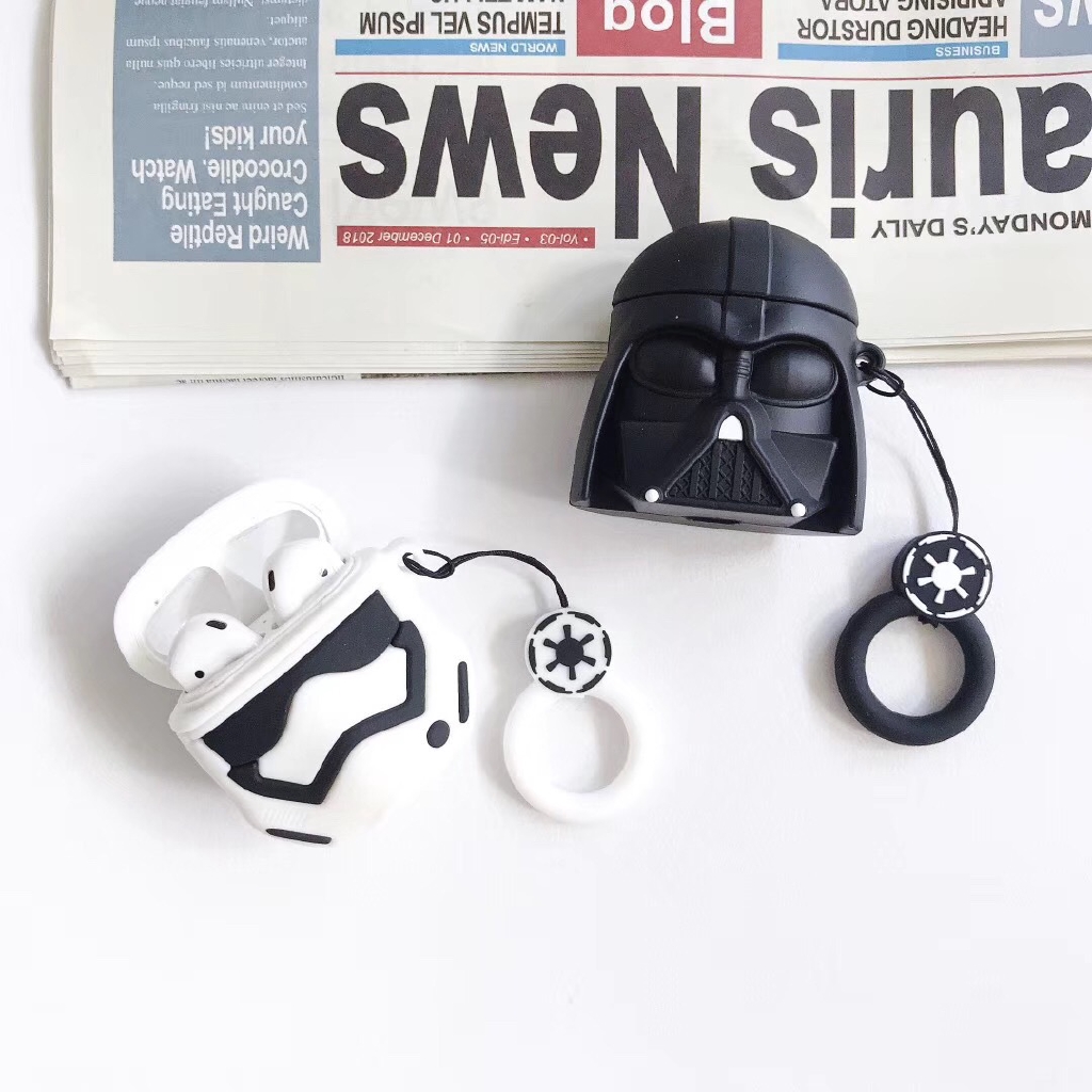 Giới thiệu Cute Cartoon Star Wars Protective Case Apple Headphones Airpods 1 2 White Black Samurai Silicone Shatter-resistant Shell