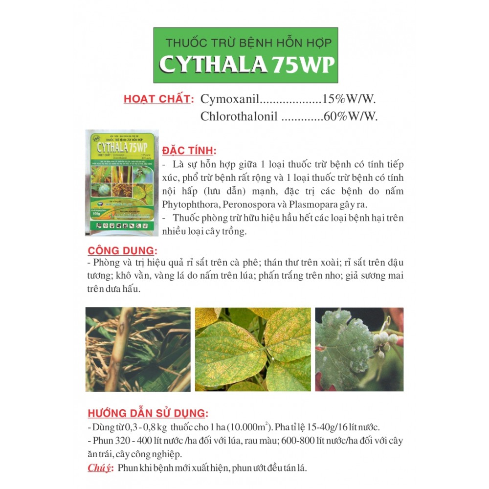 Giới thiệu CYTHALA 75WP (Gói 100g) Chuyên rỉ sắt cà phê, đậu tương, khô vằn cây lúa