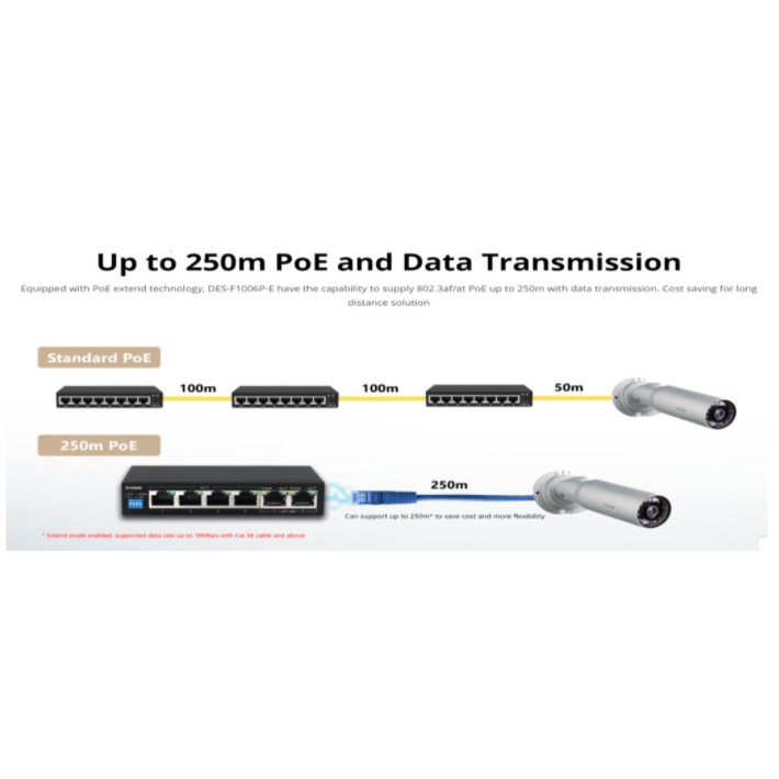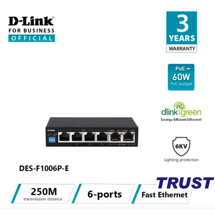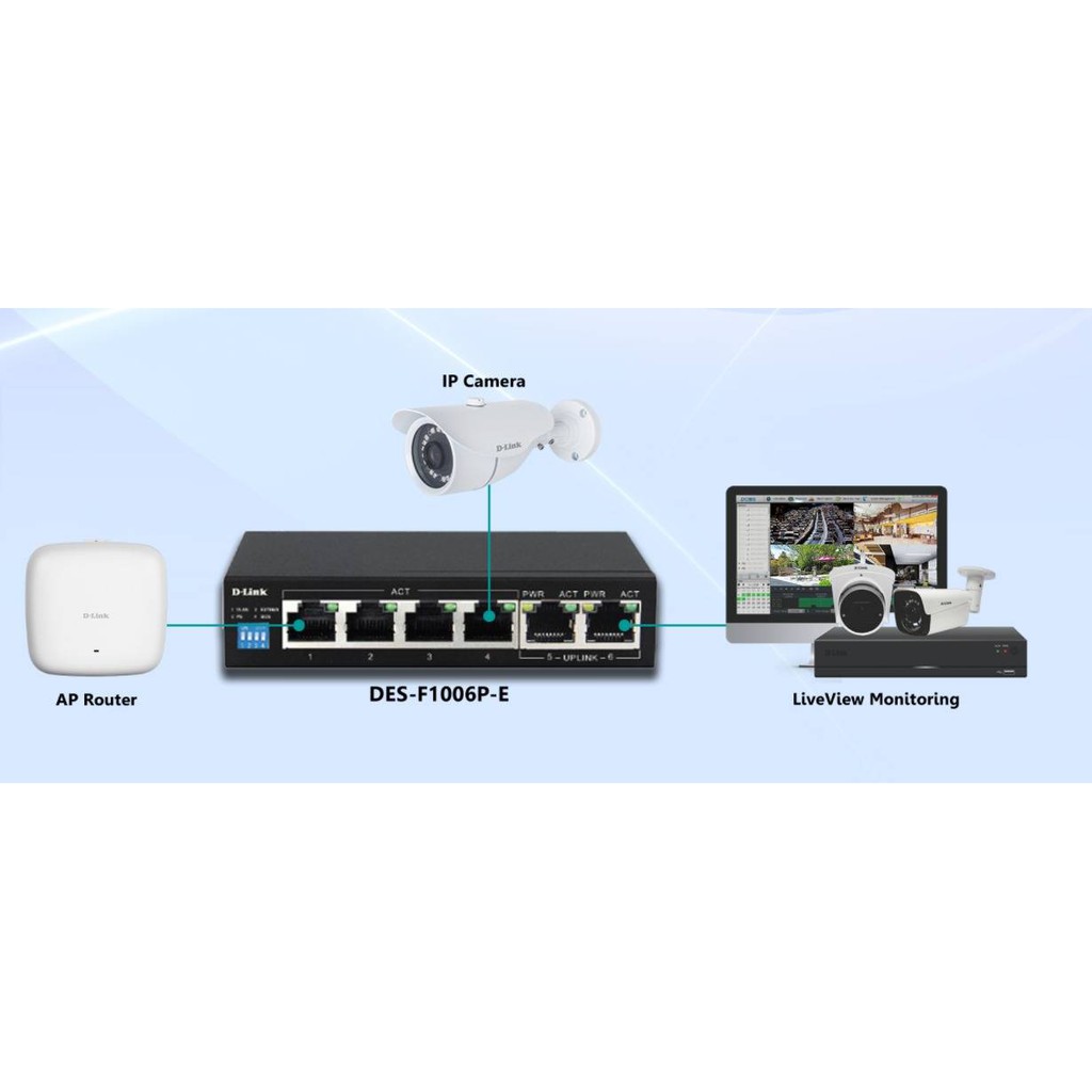 Giới thiệu D-LINK DES-F1006P-E - Bộ chia cổng mạng 250M 6 cổng 10/100 (4 cổng PoE + 2 cổng uplink)