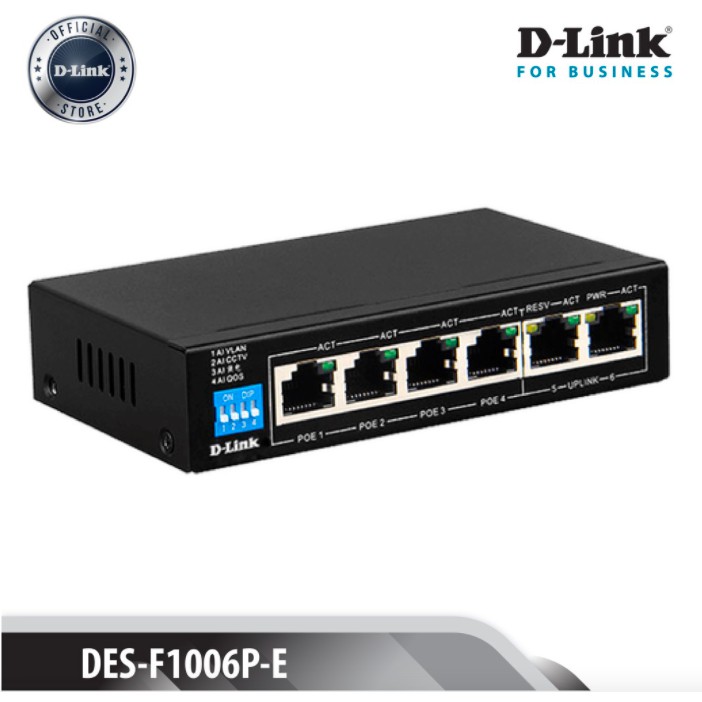 D-LINK DES-F1006P-E - Bộ chia cổng mạng 250M 6 cổng Port 10/100 (4 cổng PoE + 2 cổng uplink)✔✔✔ MÔ TẢ SẢN PHẨM ✔✔✔