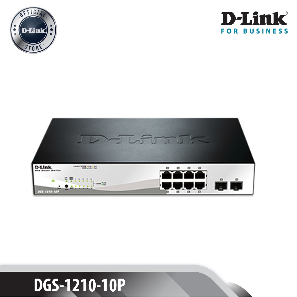 Máy tính & Laptop > Thiết Bị Mạng > Bộ chia mạng || D-LINK DGS-1210-10P - Bộ chia cổng mạng có PoE 10 cổng 8 x 10/100/1000BASE-T PoE ports + 2 x Gigabit SFP portsCòn hàng