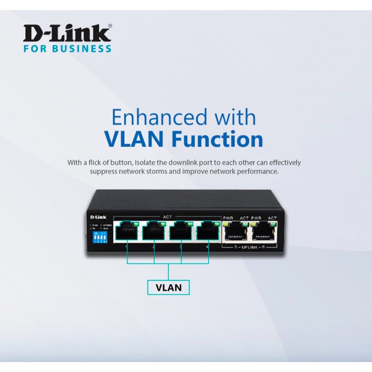 Giới thiệu D-LINK DGS-F1006P-E - Bộ chia cổng mạng 250M 6 cổng 10/100/1000 (4 cổng PoE + 2 cổng uplink)