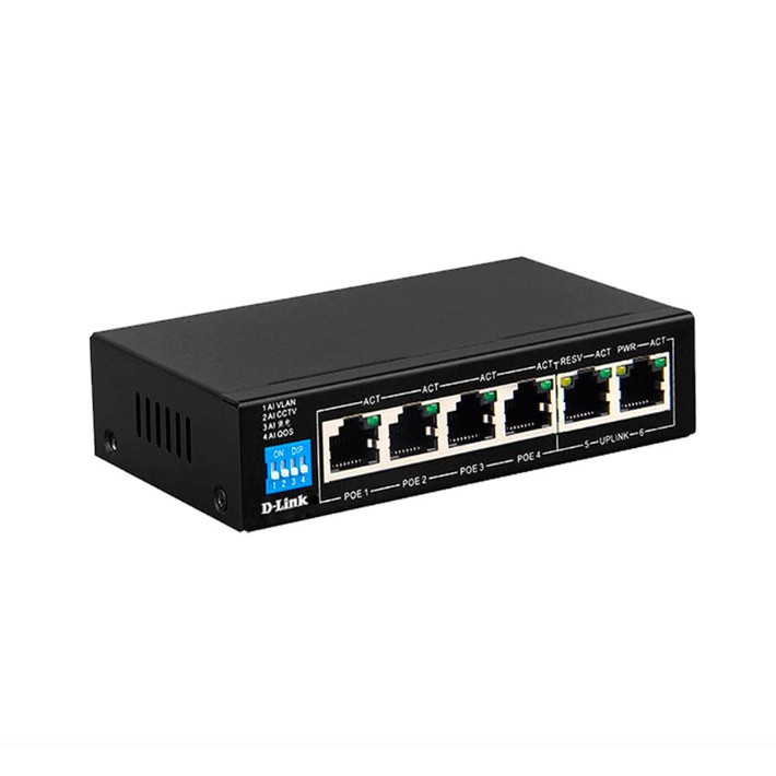 D-LINK DGS-F1006P-E - Bộ chia cổng mạng 250M 6 cổng 10/100/1000 (4 cổng PoE + 2 cổng uplink)