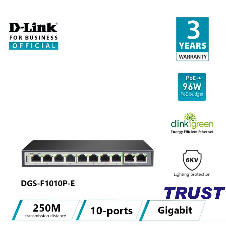 D-LINK DGS-F1010P-E - Bộ chia cổng mạng có PoE 10 cổng 10/100/1000 Switch (8 cổng PoE và 2 cổng Uplink)✔✔✔ MÔ TẢ SẢN PHẨM ✔✔✔