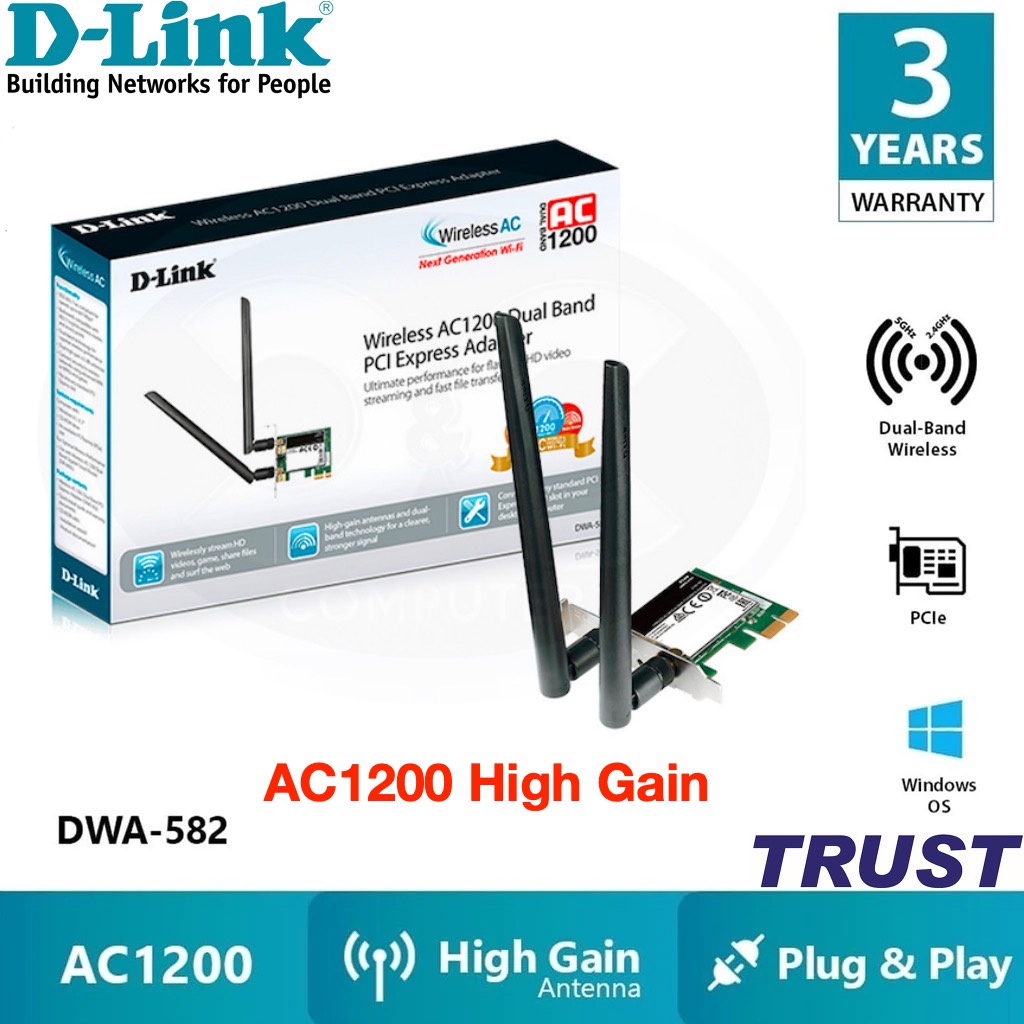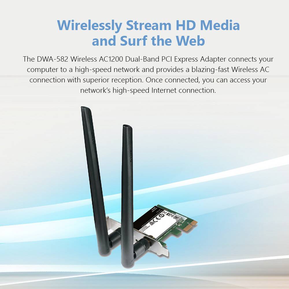 • PCI Express cung cấp kết nối băng thông tốc độ cao với hiệu năng vượt trội so với giao tiếp PCI cũ. Có thể gắn DWA-582 vào bất kỳ khe PCI-E nào trong máy tính, cho dù đó là khe x1, x4, x8 hoặc x16. Việc lắp đặt card PCI-E khá dễ dàng bằng cách cố định bên trong thùng máy tính, giữ an-ten nằm ở phía sau của máy.