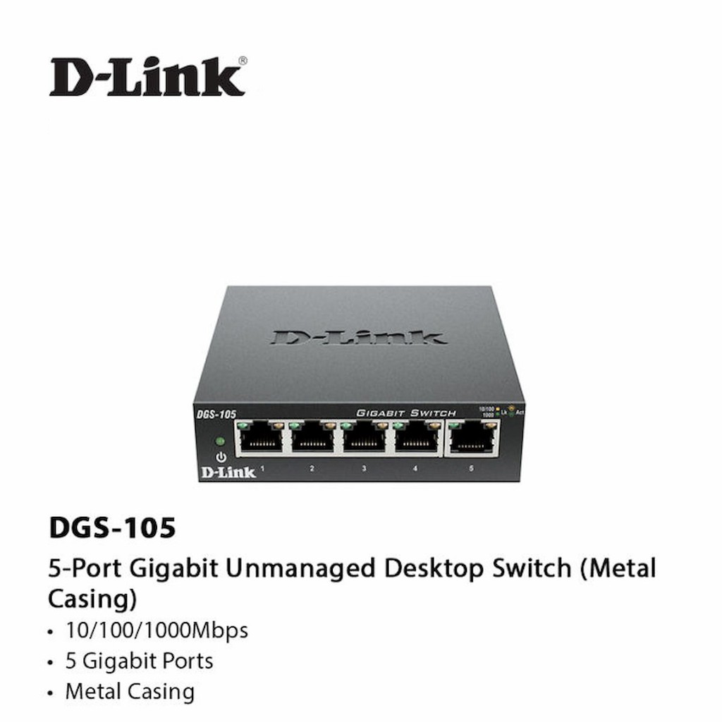 - DGS-105 là một giải pháp chuyển mạch mạng tiết kiệm, dễ sử dụng dành cho văn phòng và doanh nghiệp cỡ vừa và nhỏ đang tìm kiếm lợi ích từ việc tăng cường khai thác băng thông của mạng Ethernet Gigabit. Bộ chuyển mạch DGS-105 cung cấp 5 cổng chuẩn Gigabit, cho phép dễ dàng mở rộng hệ thống mạng và nhanh chóng nâng cấp hệ thống mạng lên chuẩn kết nối Gigabit. Bộ chuyển mạch này còn hỗ trợ tính năng Quality of Service (QoS) và Energy Efficient Ethernet (EEE), mang đến hiệu năng mượt mà và tiết kiệm chi phí hơn.