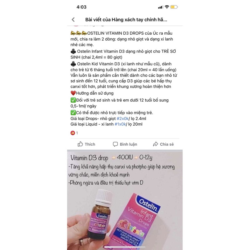 Nhà cửa & Đời sống > Làm vườn > Phân bón || D3 Ostelin xylanh 20mlCòn hàng