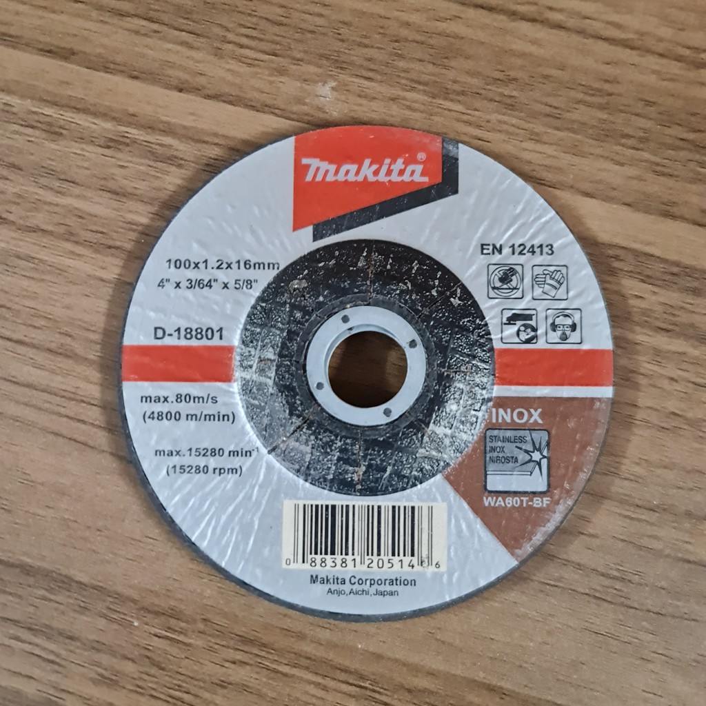 Nhà cửa & Đời sống > Dụng cụ & Thiết bị tiện ích > Dụng cụ > Cưa, máy cắt & máy mài || ĐÁ CẮT MAKITA MỎNG CHO INOX/THÉP WA60T 100X1.2X16MM (D-18801)Còn hàng