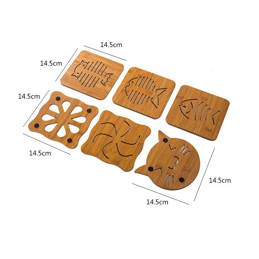Với kích thước vuông, gọn, được khắc các họa tiết ngộ nghĩnh đẹp mắt, đế lót nồi bằng gỗ cũng là 1 vật dụng trang trí giúp cho bàn ăn của gia đình bạn thêm sinh động và lạ mắt.