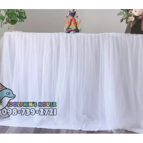 KHĂN QUÂY BÀN VOAN LƯỚI TRANG TRÍ BÀN TIÊC SINH NHẬT, TIỆC CƯỚI, SỰ KIỆN.Khăn quây bàn vải voan lưới dùng để trang trí bàn tiệc sinh nhật cho bữa tiệc lung linh hơn.